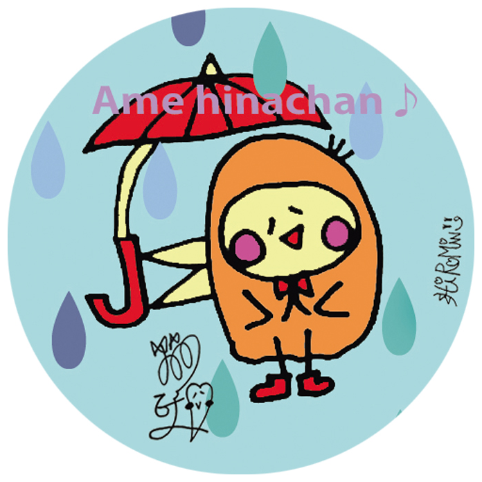 雨女オーノ画伯が描く、雨とひよこのコラボレーション。